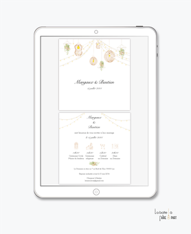 Le faire-part de mariage numérique fixe est un visuel personnalisé que vous pouvez envoyer facilement par email, WhatsApp, Messenger, ou SMS, en France comme à l’étranger.